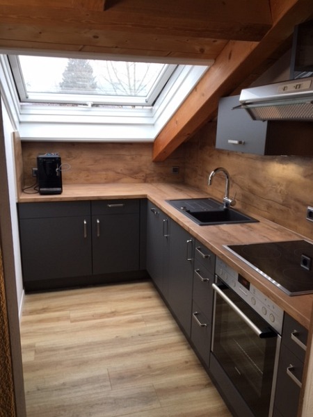 Unsere liebevoll eingerichtete 2 Zimmer Ferienwohnung ca. 57 m² befindet sich im Dachgeschoss. Heller Sichtdachstuhl, große Panoramadachfenster in allen Zimmern, komplett ausgestattete Küche mit allem Komfort wie Nespresso- sowie Pad und Filterkaffeemaschine, Spülmaschine, Micro usw. Bad mit Wanne mit Blick in den nächtlichen Sternenhimmel !!!